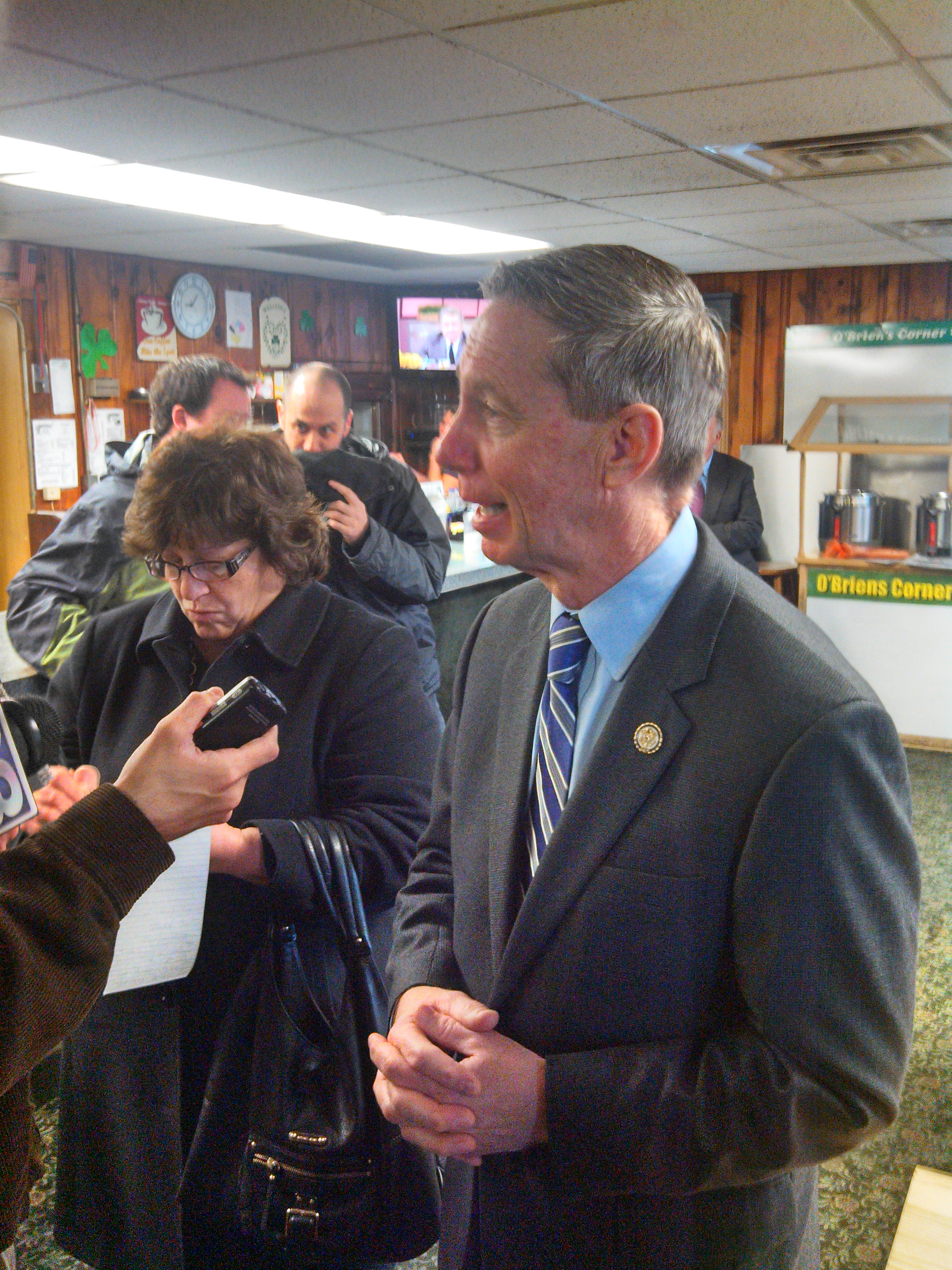 Like many underdogs, Lynch has gone after Markey. Lynch has called him a “creature of Washington” while complaining that Democrats elected to the Senate are not moderate enough. Instead, he told reporters and diners at O’Brien’s Corner, what the Senate needed was somebody standing up for working people. In recommending himself, Lynch said he knows what its like in the unemployment line and that he voted against TARP.
