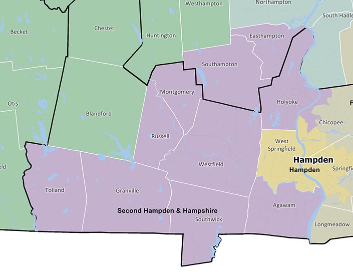 The Second Hampden & Hampshire Senate district includes Agawam, Easthampton, Granville, Holyoke, Montgomery, Russell, Southampton, Southwick, Tolland, Westfield and four precincts in Chicopee.